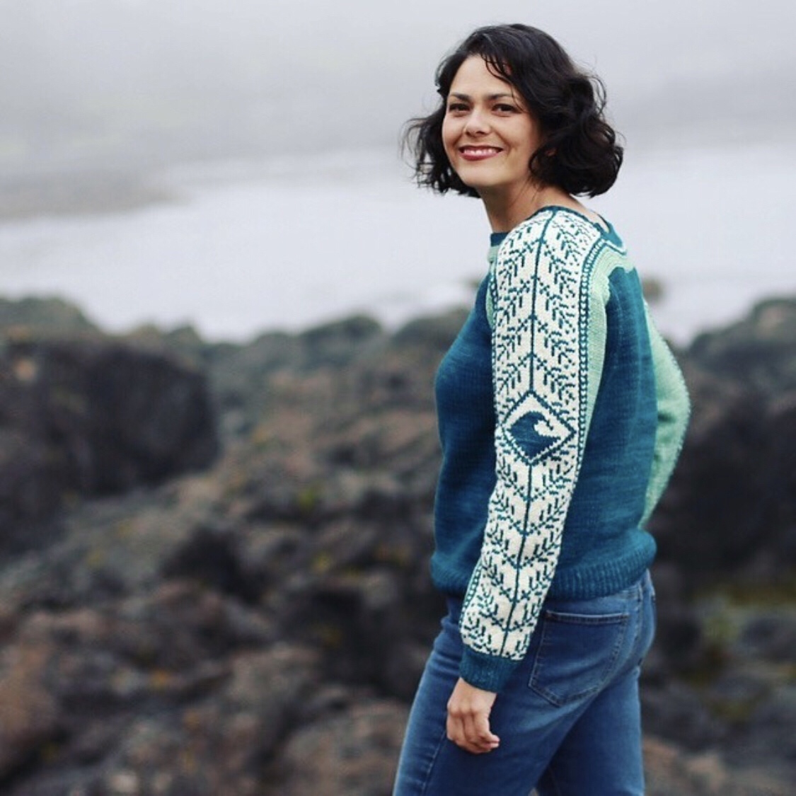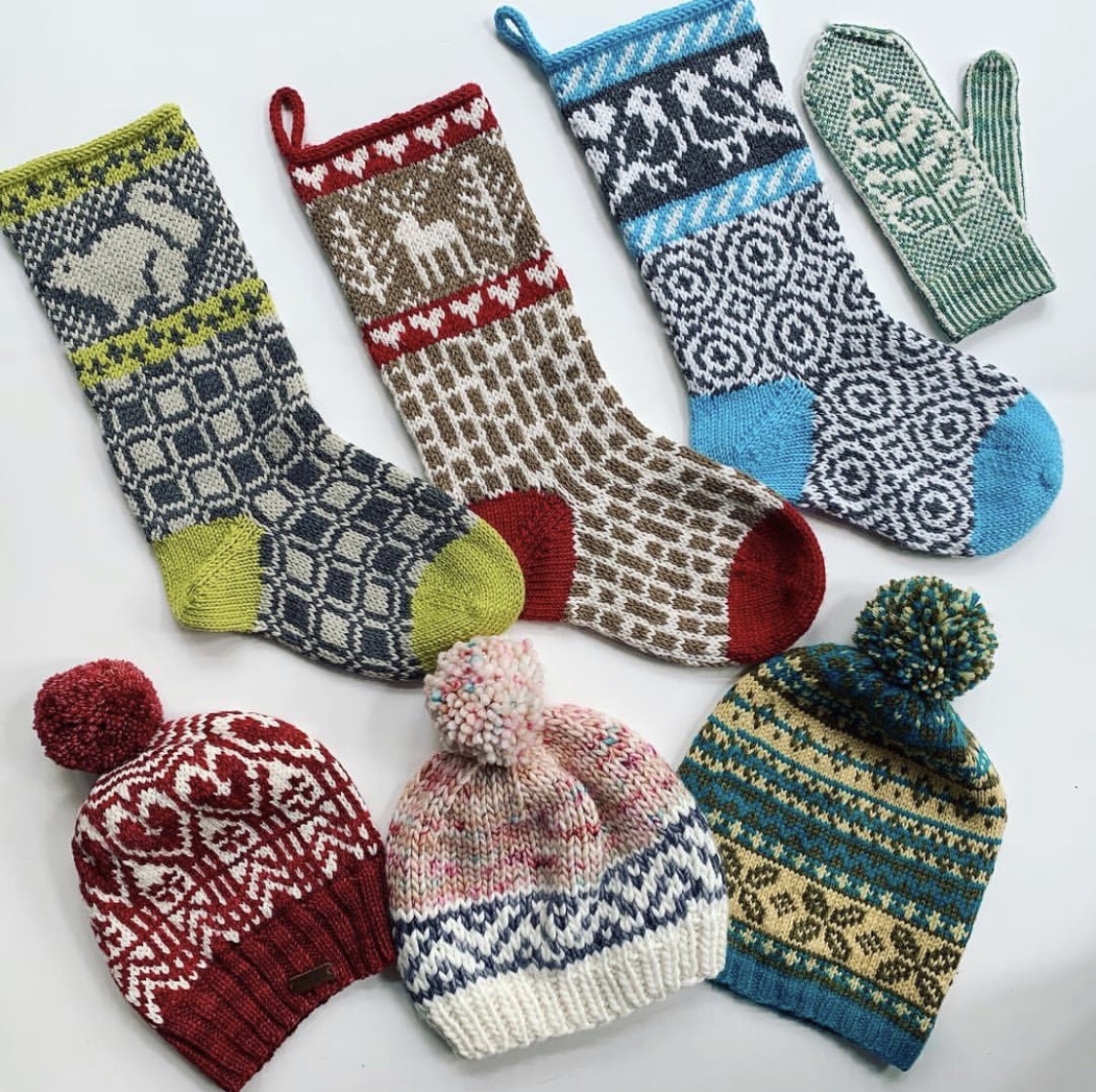 Faye Kennington makes her life on the remote western edge of Vancouver Island, in a place known to locals as “Ukee.” Stormy winters make an excellent excuse for throwing some logs on the wood stove and swatching away. She is known for her colourwork designs and quick knits. We met Faye this spring on our Northern Vancouver Island Roadtrip stop in Ucluelet and realized we had come across many of Faye’s extensive pattern collection pieces before without linking them back to this single source of local talent. Currently our favorite is her Wrapt Collection where proceeds from the sale of her online collection are donated to Food Bank on the Edge Society which helps feed those in need in the Ucluelet and Tofino communities. Come and see an amazing selection of Faye’s talented designs this Sunday at our 2667 Hastings St location.