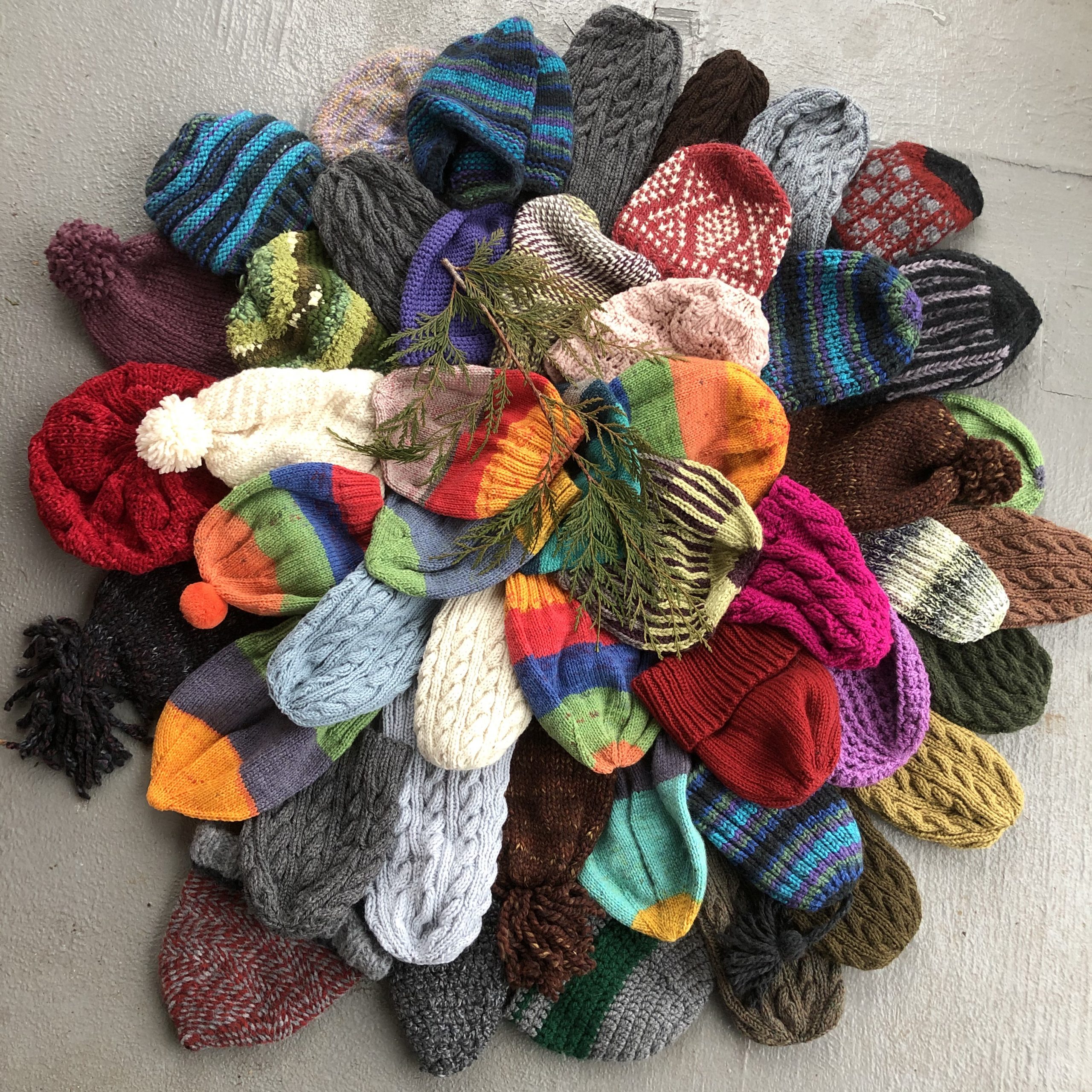It became clear near the beginning of the drive that we had a plethora of hand made hats, so we were able to make TWO separate holiday gift donations to every resident of two of Vancouver’s recently opened Temporary Modular Housing units. TMHs have been appearing all across the city as a means to provide housing, meals and life skills to some of the 2,200 people do not have a home in Vancouver. We have been collecting and distributing handknits/crochet/weaves to every resident in various TMHs since they were launched in late 2018, including socks, scarves, more socks, and the hats, hat, and socks (below).
