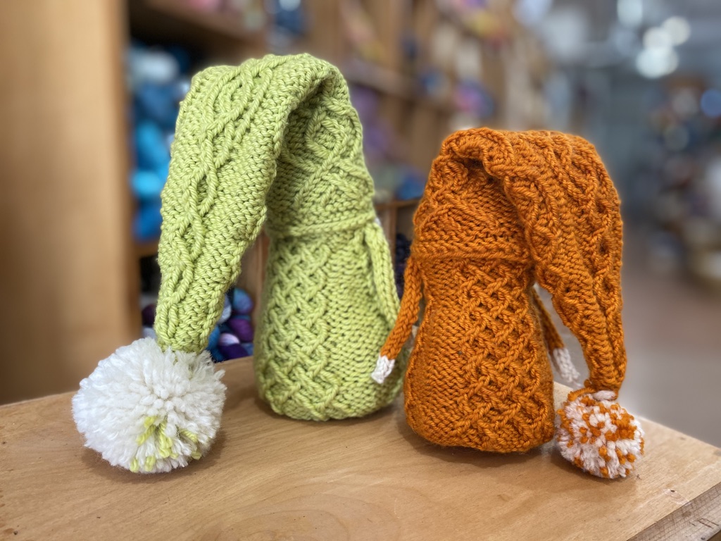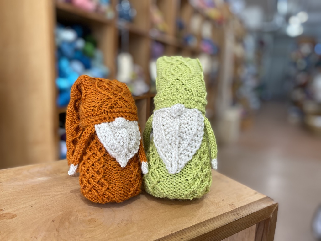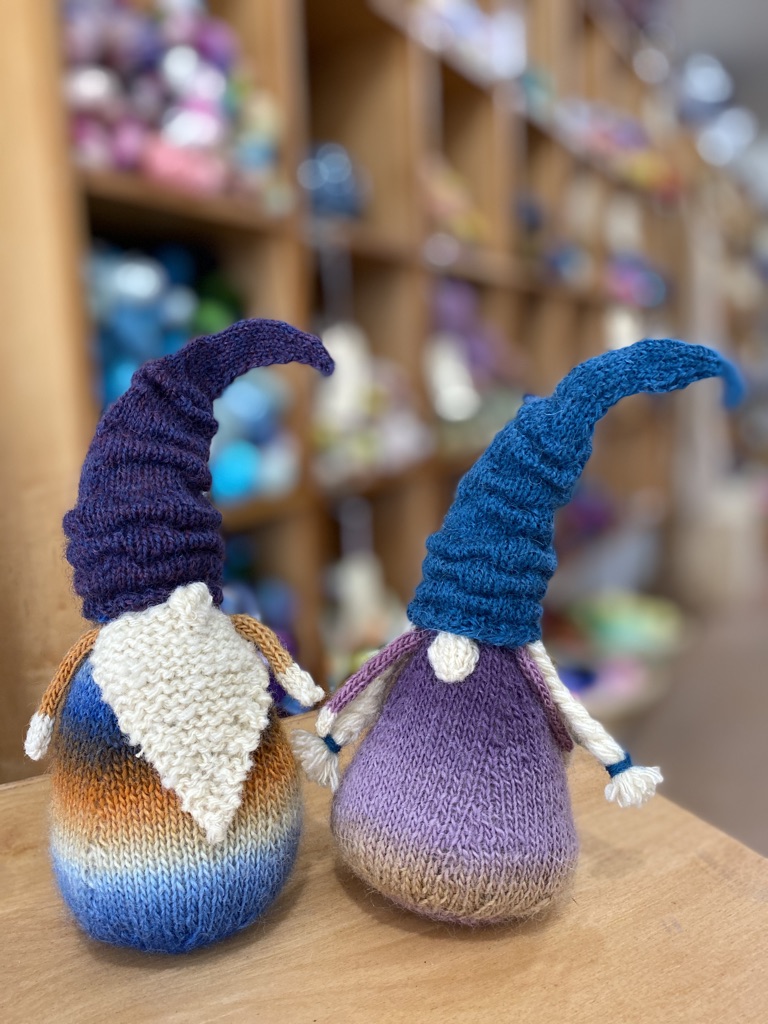 We have put together kits of everything you need to knit up one of these two patterns by Imagine Landscapes: Here We Gnome Again and Gnome Pun Intended. If you need a quick grab and go that we can get in the mail for your sanity, here’s a quick way to add a friend to your household.