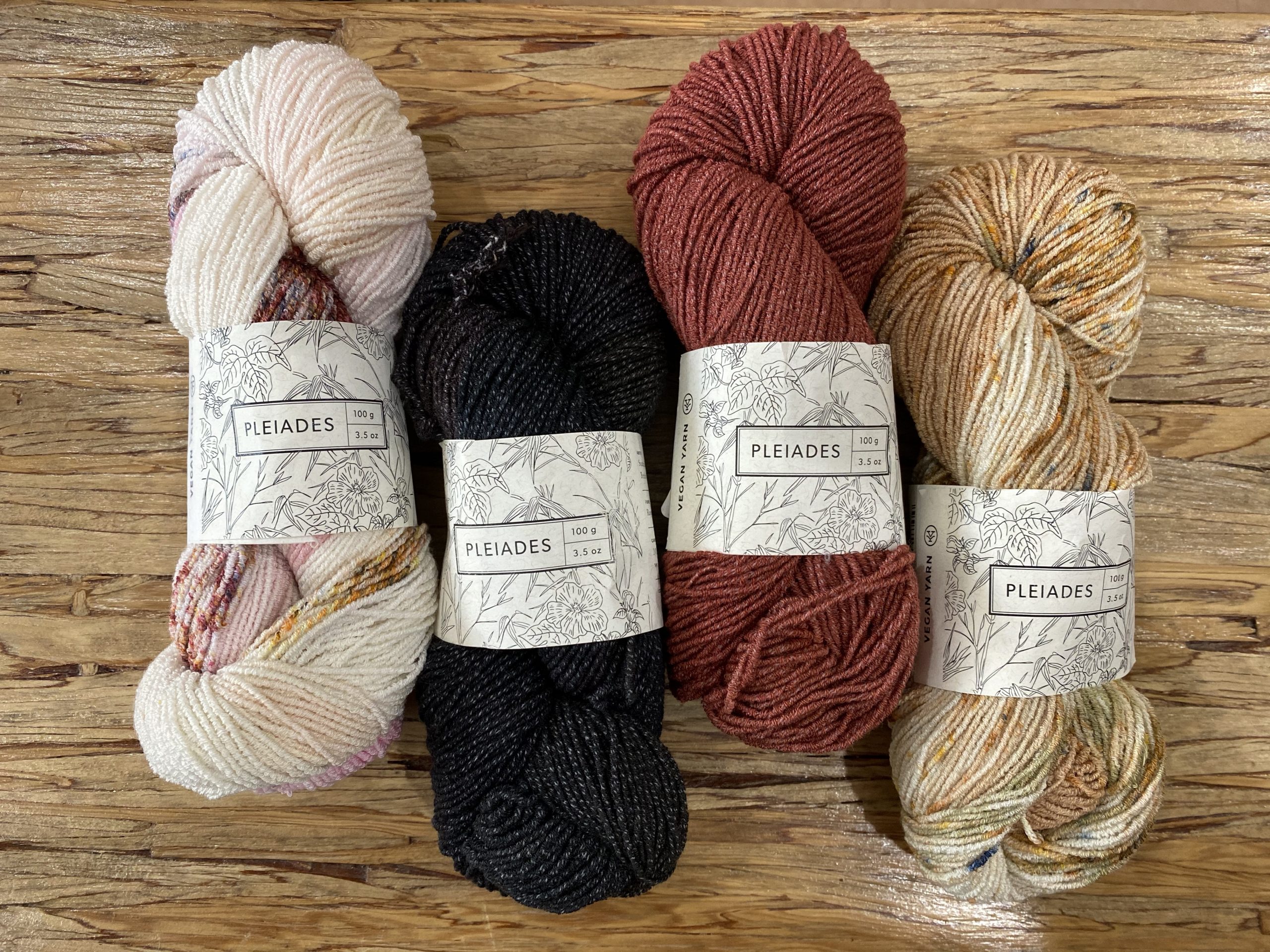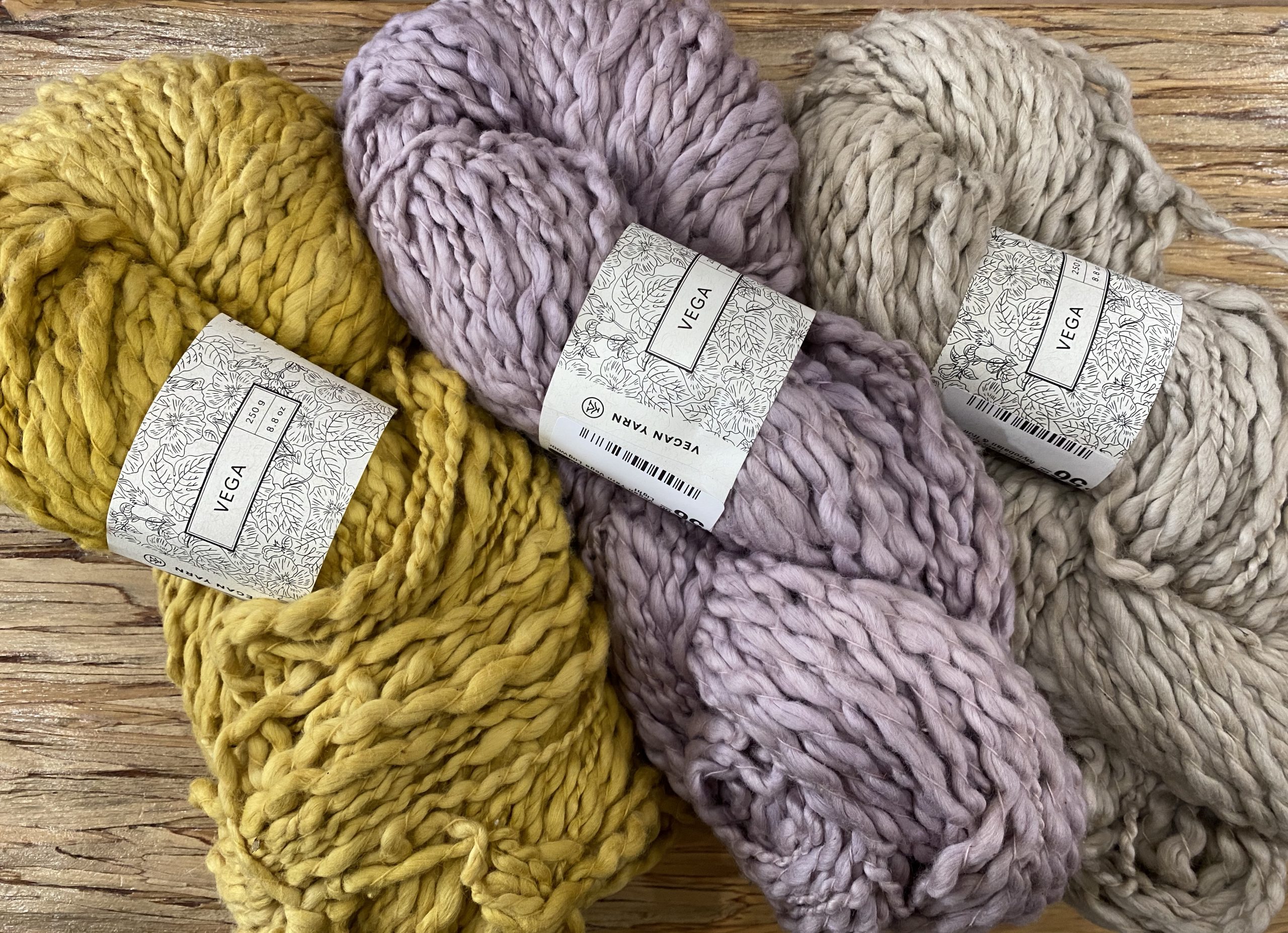 In addition to carrying Pakucho cotton, we also carry Pleiades (sock fingering bamboo and cotton blend), Bellatrix (fingering weight bamboo), and Vega (super bulky organic cotton) lines of Vegan Yarn in the store. From Peru to New West to you!