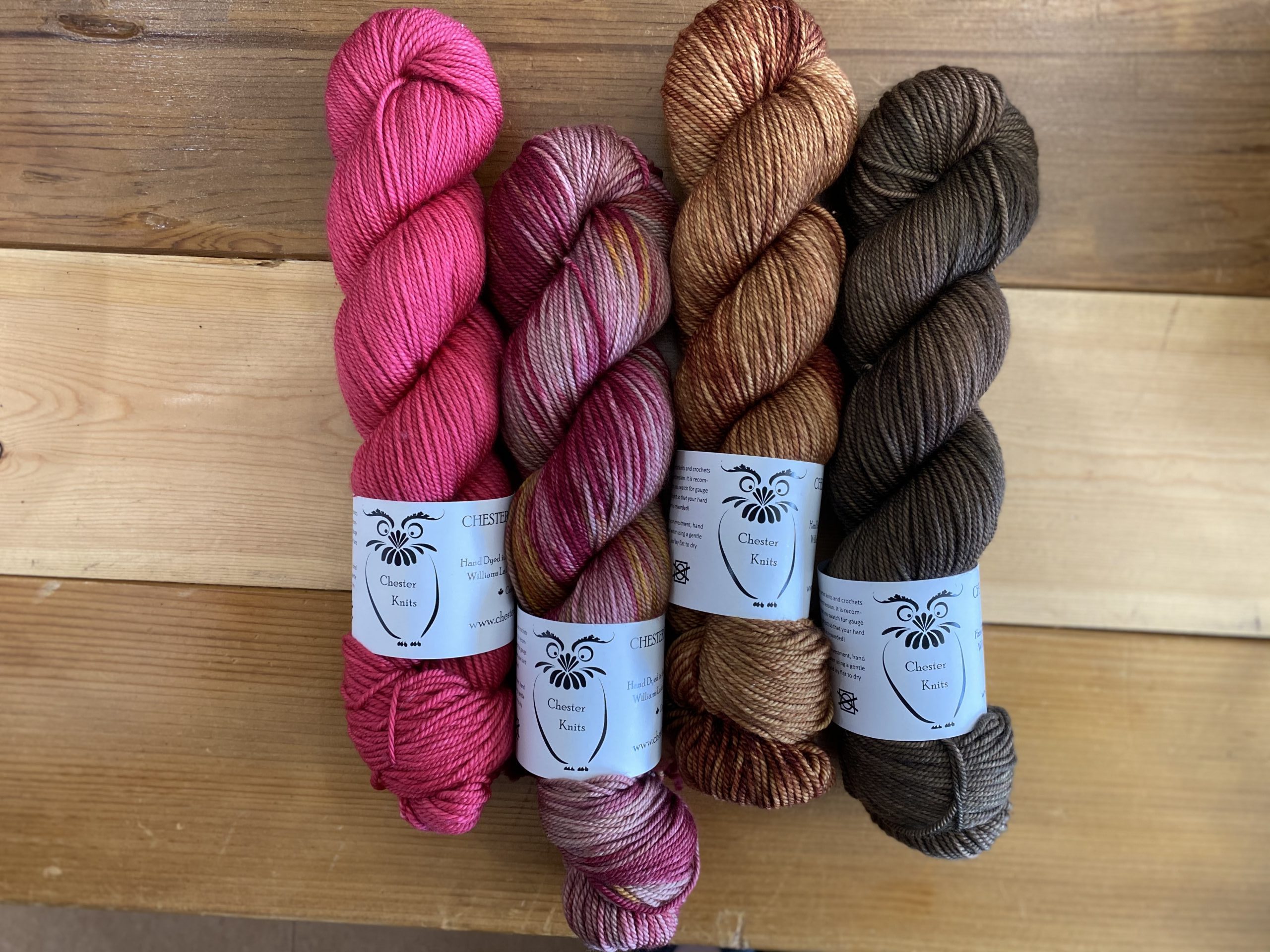 Gabby, our Community Coordinator, knit this one up in our super soft Chester Knits sport yarn (along with a little bit of Hedgehog DK from her stash). The pattern calls for four skeins of the Chester Knits sport, which knits up perfectly to meet the gauge in the pattern (which is DK). That said, make sure to do a gauge swatch before starting to ensure your gauge matches the pattern! The Chester Knits yarn is special, it has beautiful depth of colour, is incredibly soft and is one of our favourite yarns to knit with (check out this recent post on Chester Knits yarn). The Chester Knits sport is 100% superwash merino and comes in 283 y (259m) skeins. You can of course swap Chester Knits out for any of our DK weight yarns in the online store.