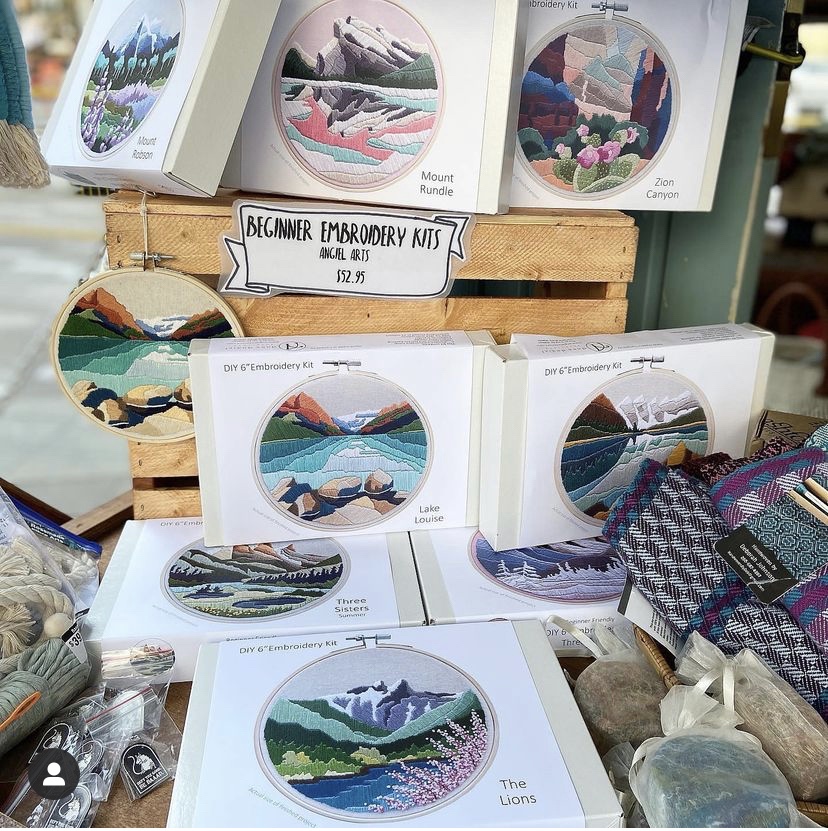 First up, we will host our FINAL show with The Travelling Woolery. This cutie became part of the family in Jan 2020, and we have hosted a number of markets with her to share our love of fibre arts. Recognizing that knitting is a long game, we focused on intro fibre arts kits from indie and local makers, featuring beginner needle-felting, embroidery, macrame and weaving. We kept a selection of our shop’s newest yarns on the backside of the trailer and our knitty and crochety friends always managed to sniff it out! We got to meet lots of fun and new fibre artists along the way, but it is now time to retire this gorgeous trailer, although as always there are new projects brewing for future opportunities to share our fibre arts love. Come and see our Woolery in all its glory for one more show as we navigate it inside the PNE Forum for this weekend’s Knit City!