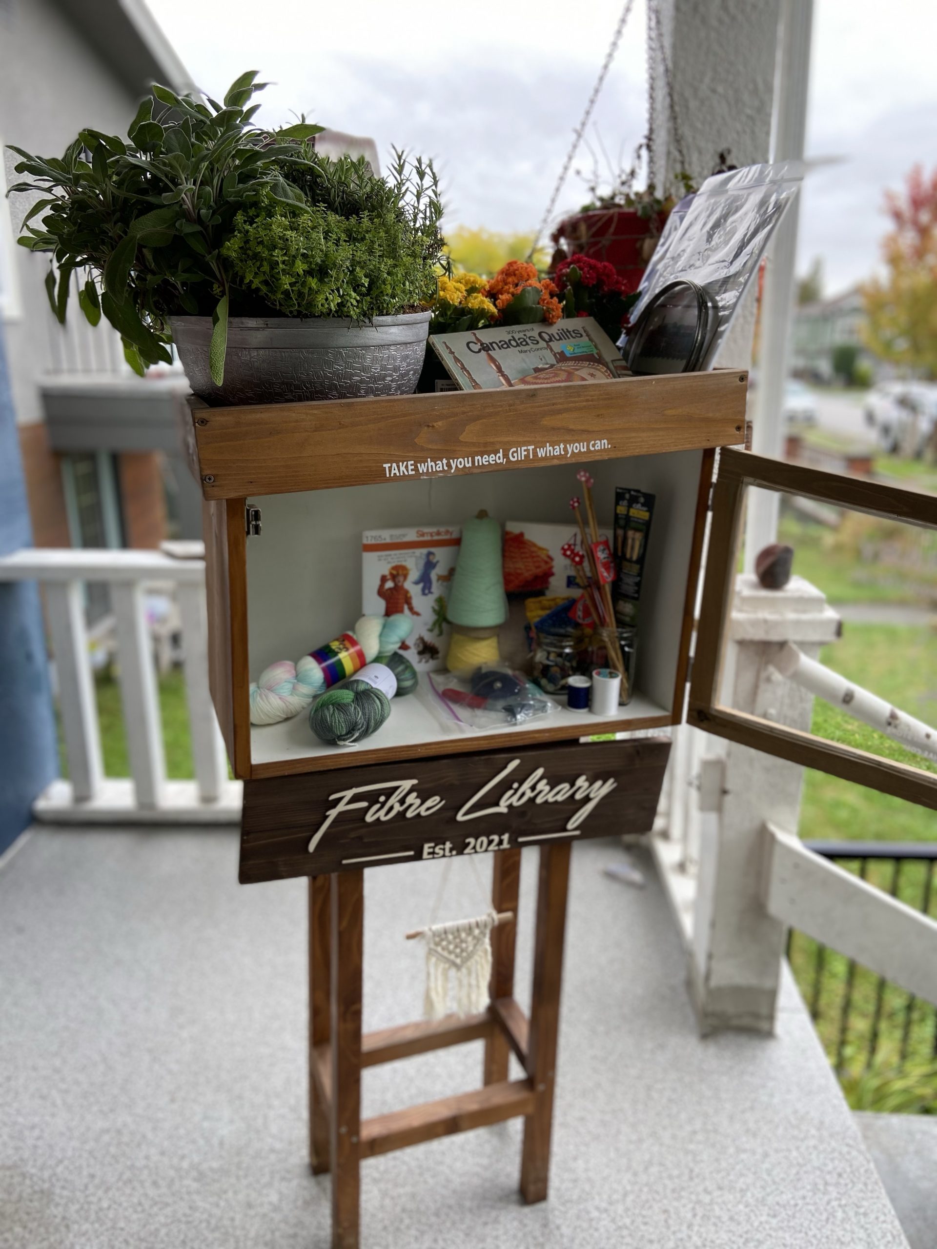 Next, we will be bringing a mobile version of our Little Fibre Library. This is the retired Fibre Library from Olympic Village which has been donated to us, and I have been squirreling away some of the very exciting donations that have crossed my path over this adventure to share with you. Bring one of your prized, under-loved skeins of yarn to the show and you can exchange it for someone else’s mystery donation. What is a Fibre Library you may ask? Check out some info here, and we would love to chat about how you can start one in your neighbourhood to help keep fibre arts accessible!