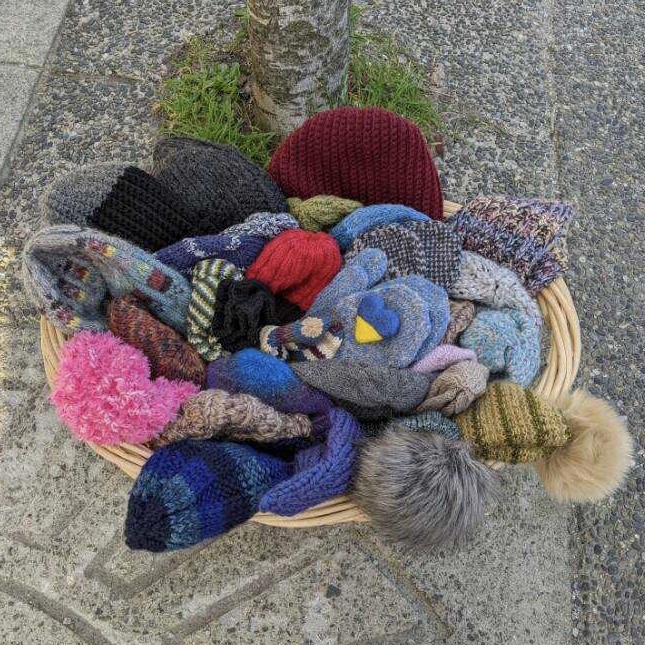 In one week we were able to put a box together with 67 hats, 16 mitts, 13 socks, 16 cowls and a felted heart pin. Also as a result of our last blog post, we were contacted by three other knitters who have been collecting warm handknits (including one in the Maritimes and one in New York) who will be shipping a box of knit goods directly to Olesia of @allwoolandayardwide who is currently working on finding the best distribution to get these in the hands of those in need.