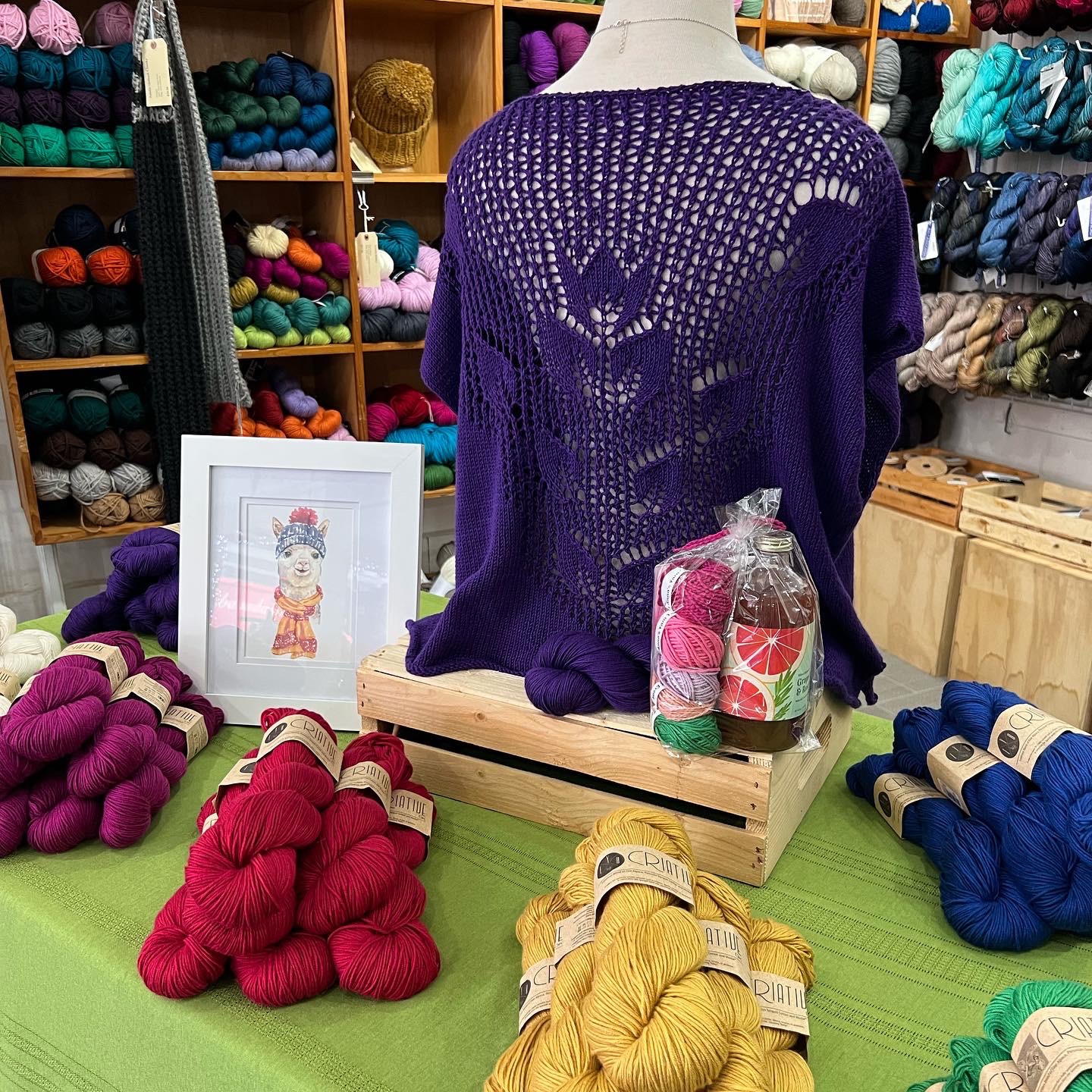 If you are not local or just not ready to share a social space, have no fear as we will be presenting the same five yarn lines in an online showing as part of this year’s Virtual Knit City on Saturday June 4th. You can pop in free of charge, but if you want the full experience, come by and pick up your tasting kit beforehand and knit along with us!