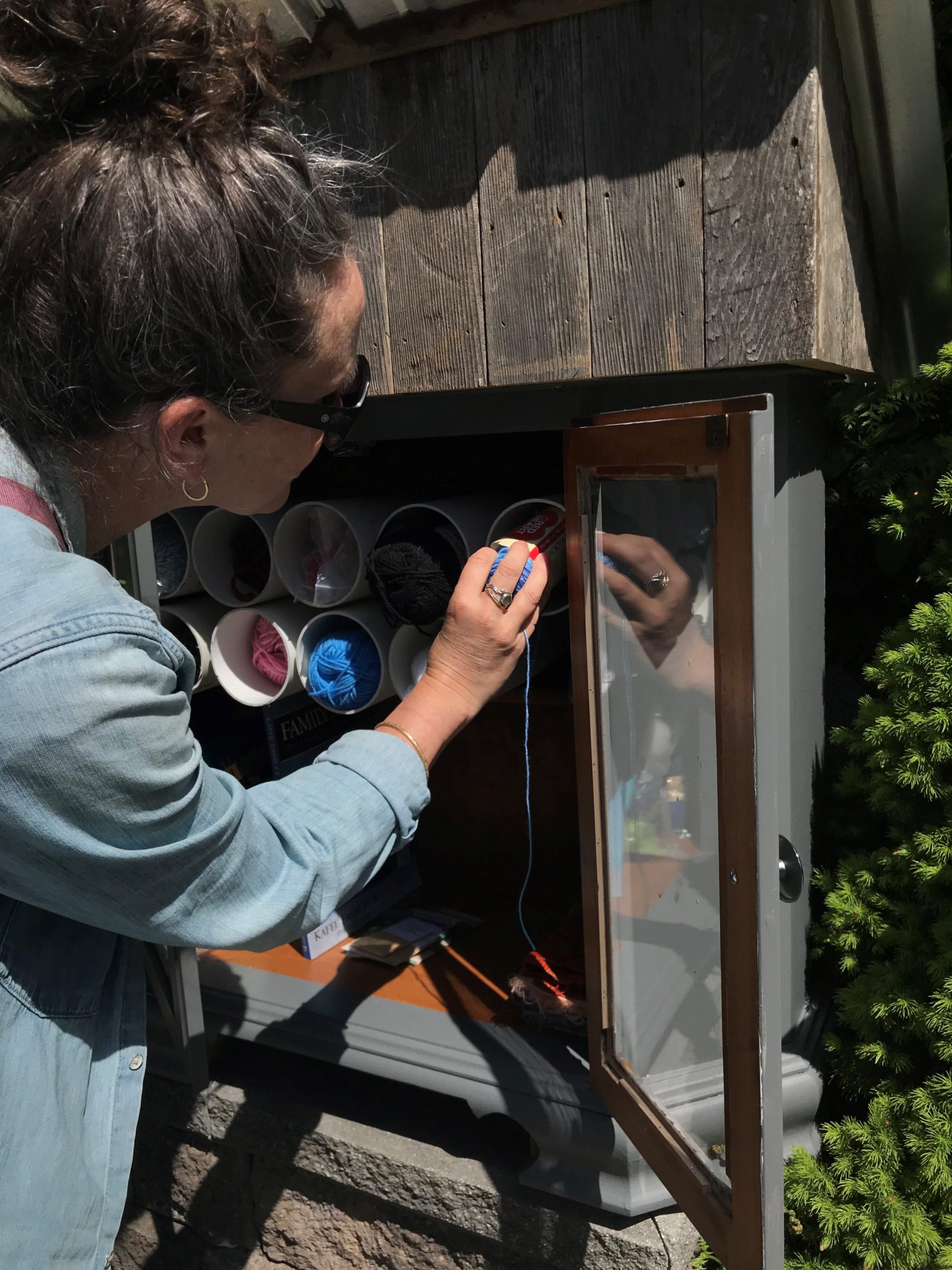 The concept of a fibre box is similar to the little libraries you might see sprinkled throughout your neighbourhood. These libraries are home to used books, and encourage families to exchange ones they have already read, with a new and exciting book that someone else has left in the box. Fibre boxes are similar, only they aren’t stocked with books, they are stocked with knitting supplies. Can you imagine a super cool box near you stocked with fun yarn, needles, and pattern books to inspire a new and amazing project? Sounds perfect, right?