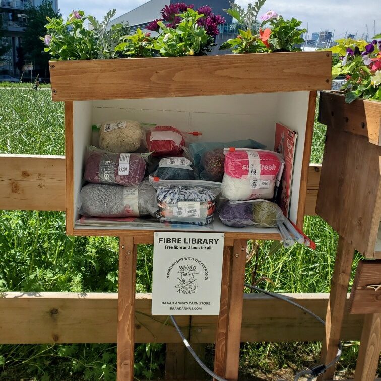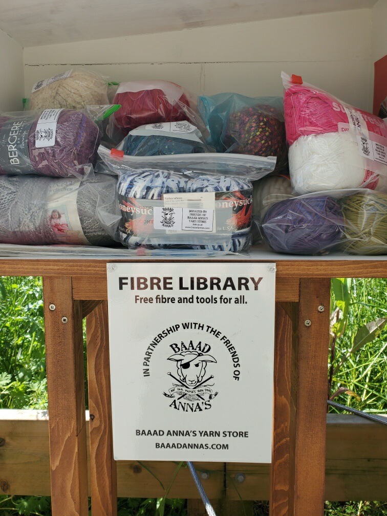 Lastly, you would think it would be challenging to keep it stocked and maintained. But we are here to help with that as well! Anyone who wants to host a neighbourhood Fibre Library can reach out and we will put together a starter pack of yarn, needles and patterns to get your library launched from our in-house Upcycling Program. And once it is started it is sure to be a place of unburdening of underloved skeins and duplicate notions from community crafters!