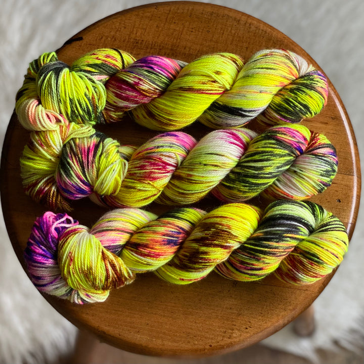 We’re over the moon to add Solar Sock to our yarn roster—and even more excited to see the wild, wonderful creations you’ll dream up with it. Can you guess the pattern we’re using for the store sample?