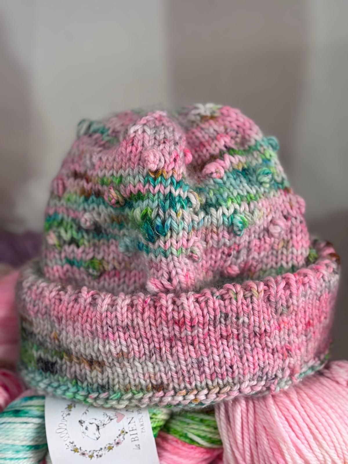 If you’ve been saving a special skein for “just the right project,” this month’s Project of the Month is a playful and texture-rich take on Lily’s Popcorn Beanie a free pattern on Ravelry.