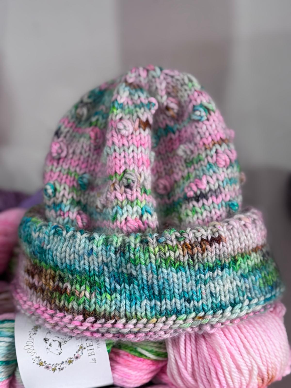 It’s one of those patterns that looks impressive, feels indulgent, and still knits up in a single weekend. Whether you pair it with laceweight, mohair, or suri for a soft halo, this beanie transforms even the smallest bit of treasure yarn into something warm and delightfully wearable – a perfect canvas for customization, stash diving, and joyful winter knitting. Each little popcorn pops into place with the kind of satisfaction that keeps you saying “just one more round” long after you planned to put your needles down.